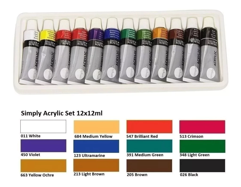 Los colores Daler-Rowney Simply Acrylic son un punto de partida perfecto para los artistas que buscan experimentar con acrílicos. Estos colores a base de agua de cuerpo blando se pueden usar directamente desde el tubo, se humedecen fácilmente en la superficie y se pueden diluir con agua.